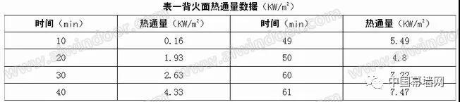 5.1.1 距試件背火面1米處熱流計(jì)測得的試驗(yàn)數(shù)據(jù)